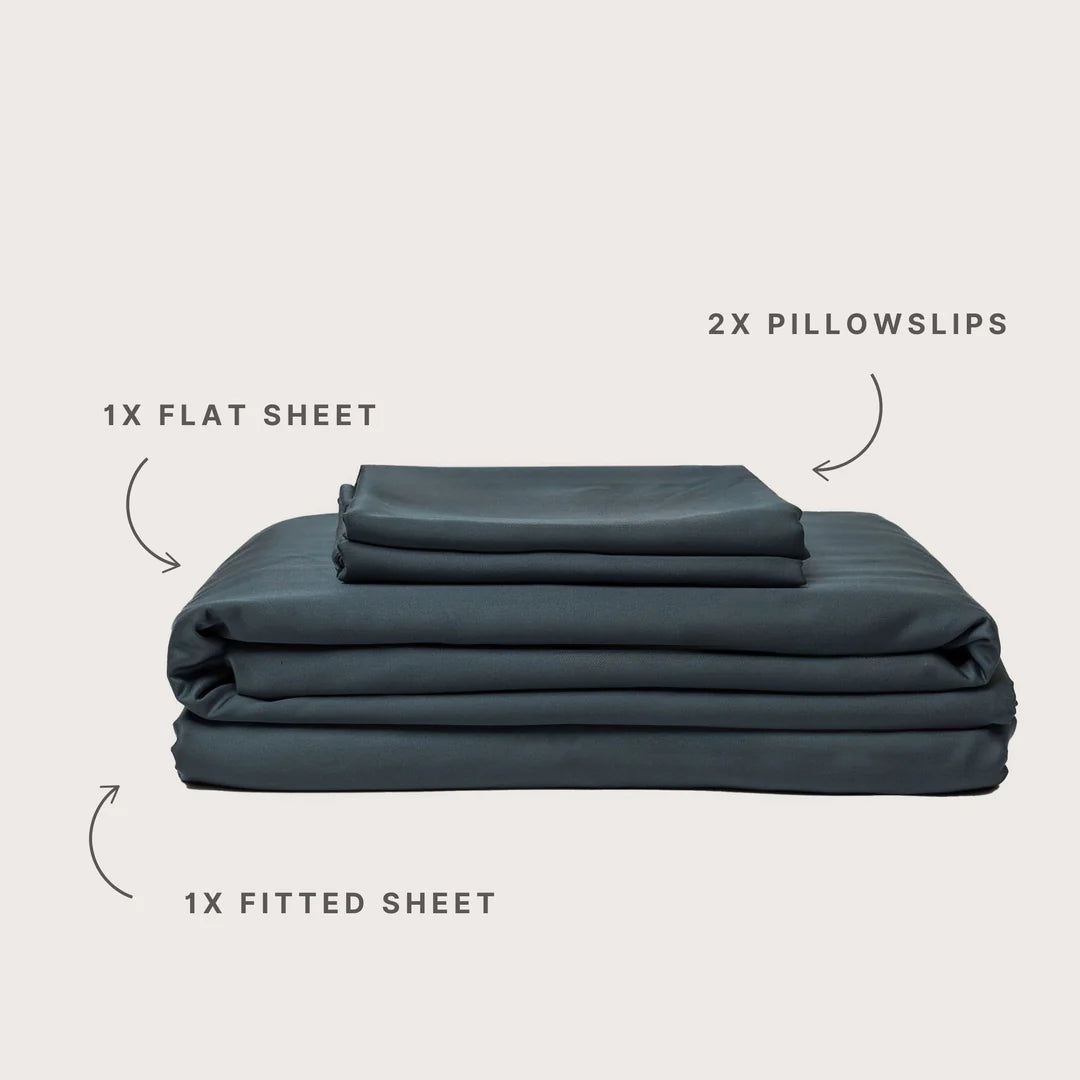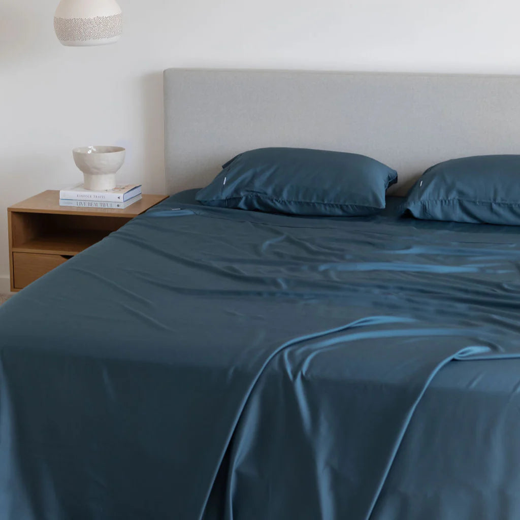 Transform your sleep with the Navy Organic Bamboo Sheet Set – where luxury and sustainability meet.
