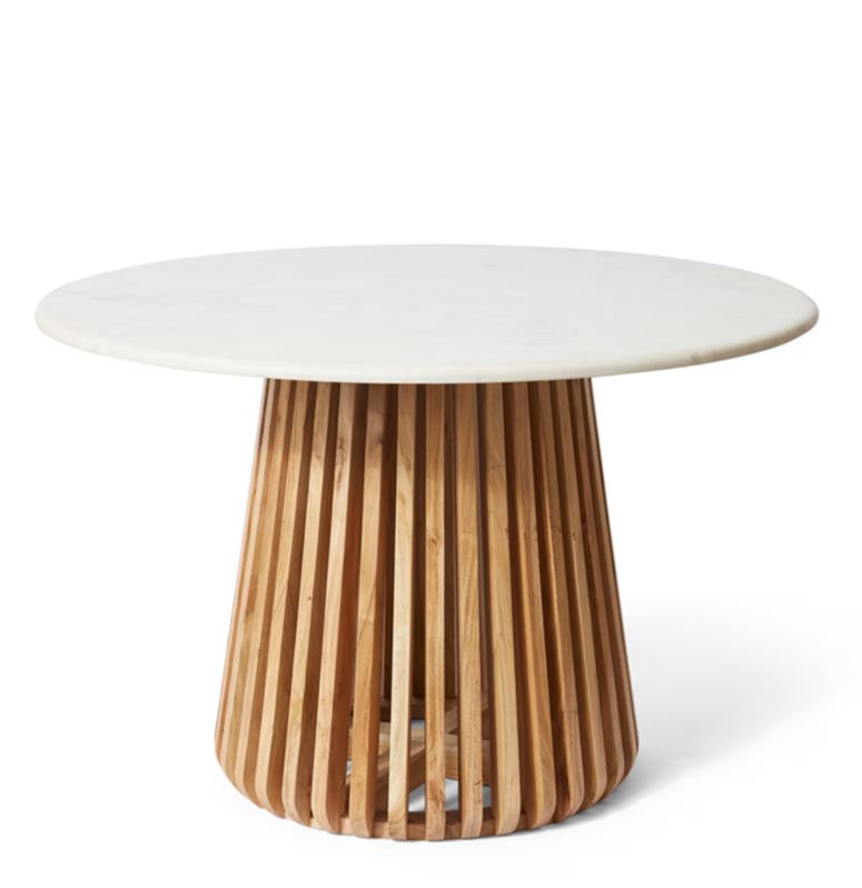 The Azuka Dining Table is a standout piece that will transform any space. With its stunning marble top and unique natural timber base, it brings a perfect blend of elegance and warmth to your home. The striking contrast of the smooth marble and the organic beauty of the timber adds visual depth and character, making it an eye-catching focal point in any dining area. Whether you're hosting family meals or entertaining guests, the Azuka Dining Table offers both style and functionality.