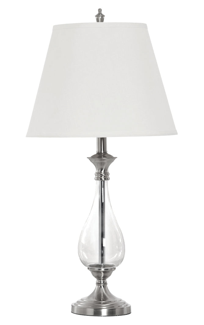 The Bloomingdale Glass Base Lamp features a sleek silver stem that rises gracefully through its clear glass base, offering a modern and sophisticated design. The cool, shimmering silver finish paired with the transparency of the glass creates an elegant, timeless piece that effortlessly enhances any room. Whether placed on a side table, desk, or bedside, this lamp adds a refined touch of luxury and warmth to your space. Its minimalist yet bold aesthetic makes it a perfect addition to contemporary interiors, bringing both style and functionality to living rooms, bedrooms, or home offices.