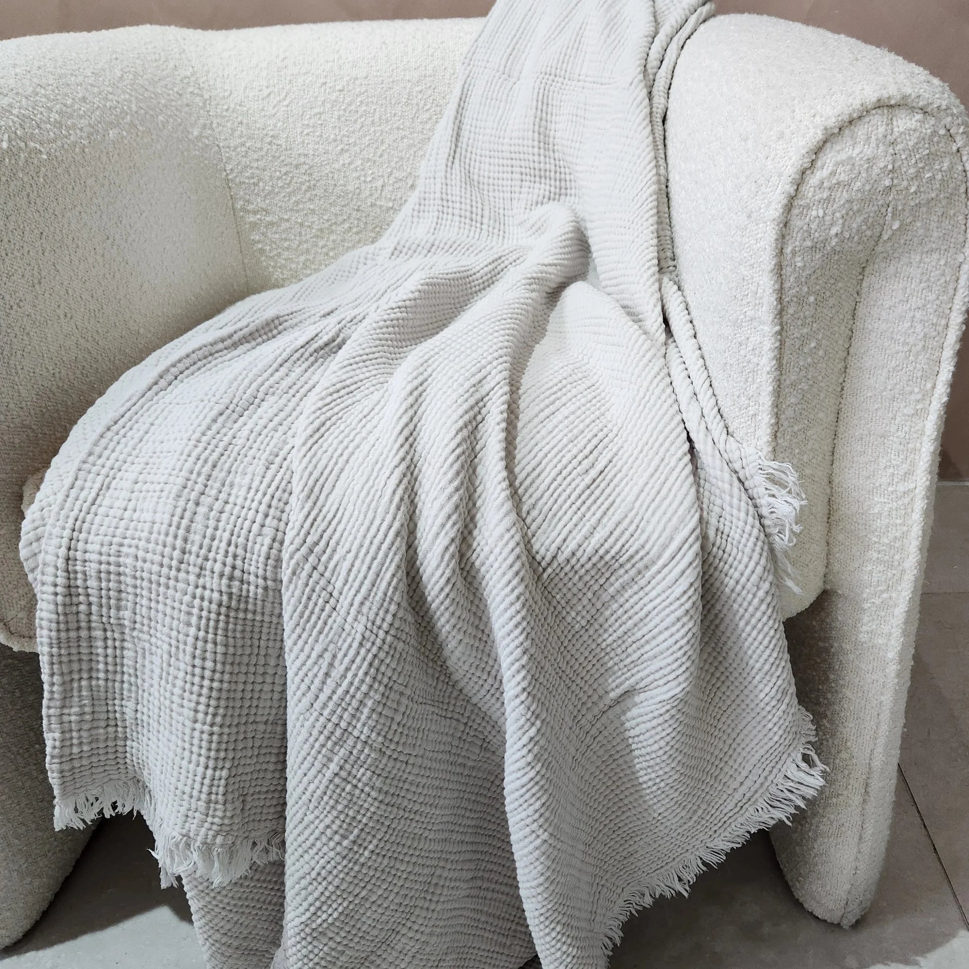 The BURSA Cotton Throw is expertly crafted with multiple layers of cotton fabric, offering a luxurious and cozy experience. The finely woven material creates a beautiful crinkled texture, providing unbeatable softness. Wrap yourself in comfort and warmth throughout the chill season with this throw.