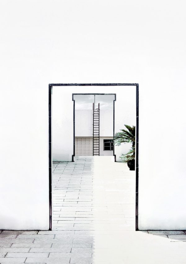 Secret Passage by Cooper Black is a striking photograph that evokes a sense of mystery and intrigue. The image features two doorways with bold black frames, set against a minimalist white background. At the end of the final doorway, a black ladder is attached to the building across, adding an element of curiosity and adventure, as if inviting the viewer to explore what lies beyond.