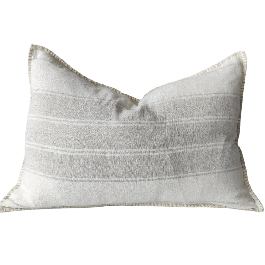 Enhance your home décor with the Zoey Pure French Linen Cushion. Crafted from high-quality French linen, this cushion features a striking black striped design with a blanket stitch edge, adding a refined touch of elegance to any room. With its generous 55cm square size, it’s perfect for bringing both comfort and sophisticated style to your living space.